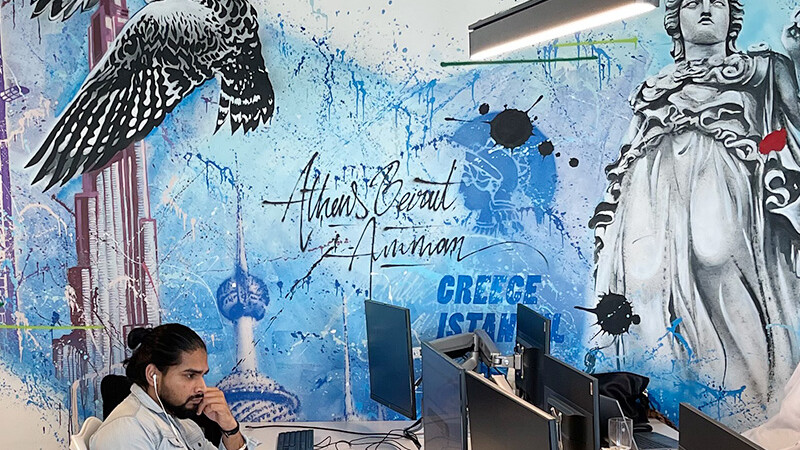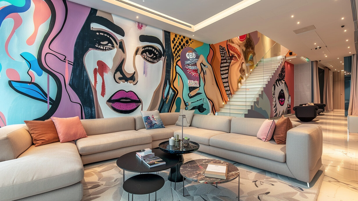 restaurant murals Dubai, interior design, unique dining experience, art in dining