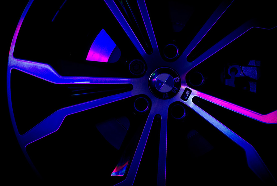 Once the live painting was completed, the set became a playground for photography. We invited photographer Samuel Péricles to capture a series of images where the reflections of the fluorescent mural slide across the bodywork, wheels and interior of the BMW X2. The abstract shapes painted on the wall were reframed by the curves of the vehicle, generating a new, almost futuristic visual language. This is the same mindset that guides our more experimental projects, like the live chocolate painting experiences we develop for large trade shows in Dubai: using art as a tool to create surprising, high-impact imagery that brands can reuse beyond the event itself.