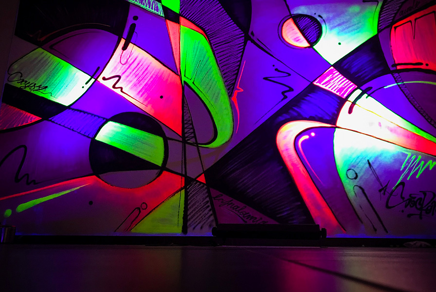 Brands that already work with live art – whether through graffiti performances for watch or fashion events or artistic live painting at trade shows in Dubai and Abu Dhabi – often look for a new step, something that will surprise their guests again. Integrating black light, fluorescent paints and an immersive sound and light design is a powerful way to refresh the experience while remaining consistent with a contemporary, urban positioning.