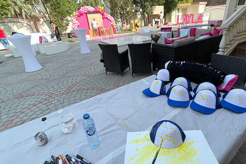 For corporate activations in Dubai, the Cap Bar concept combines live entertainment with meaningful brand impact. Every customized cap becomes a branded memento — a creative reminder of the event’s spirit. For private events, the live art element adds personality and fun, elevating the atmosphere with a touch of authenticity. Our artists can adapt lettering styles to match your brand’s tone or event theme, ensuring coherence with luxury settings like Zadig & Voltaire Abu Dhabi or fashion-driven activations such as MCM Dubai Mall and Jimmy Choo Dubai.