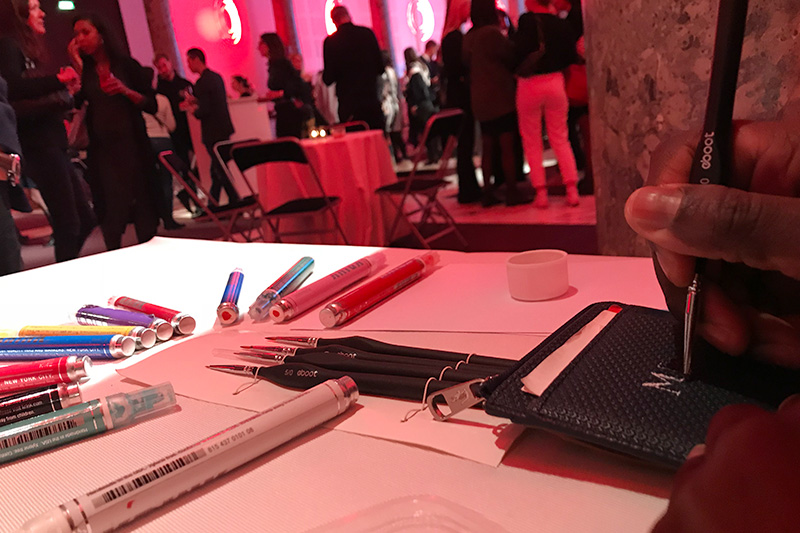 The event gathered all the Lacoste collaborators for a Christmas evening mixing speeches, music and immersive experiences. In this refined atmosphere, our Dubai leather personalization table quickly became one of the most visited activations. Guests brought their own Lacoste cardholders, pouches or small leather accessories and watched our artists add initials, graphic symbols or small illustrations directly onto their items.