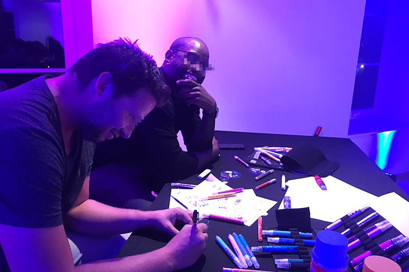 For this collaboration with British American Tobacco, our team was commissioned to personalize the brand’s new electronic vaping device during a large-scale evening event. To highlight the launch and ensure each guest left with a memorable, premium gift, four artists from Graffeur Paris – Dubai were mobilised — an approach that perfectly aligns with the expectations of Dubai product launch initials activations. Guests were invited to choose their initials, small decorative elements and subtle graphic touches, all hand-applied directly in front of them.