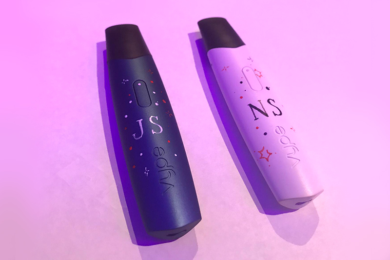This project demonstrated how personalization can adapt to a wide variety of surfaces — even small metallic objects like electronic vaporizers. As long as the material offers enough grip for paint or ink, our artists can design initials, micro-lettering or decorative elements that stand up to everyday use. This knowledge of materials and finishes is also what guides our work on notebook personalization for media events, leather goods for corporate gifting, or window calligraphy for luxury retail.