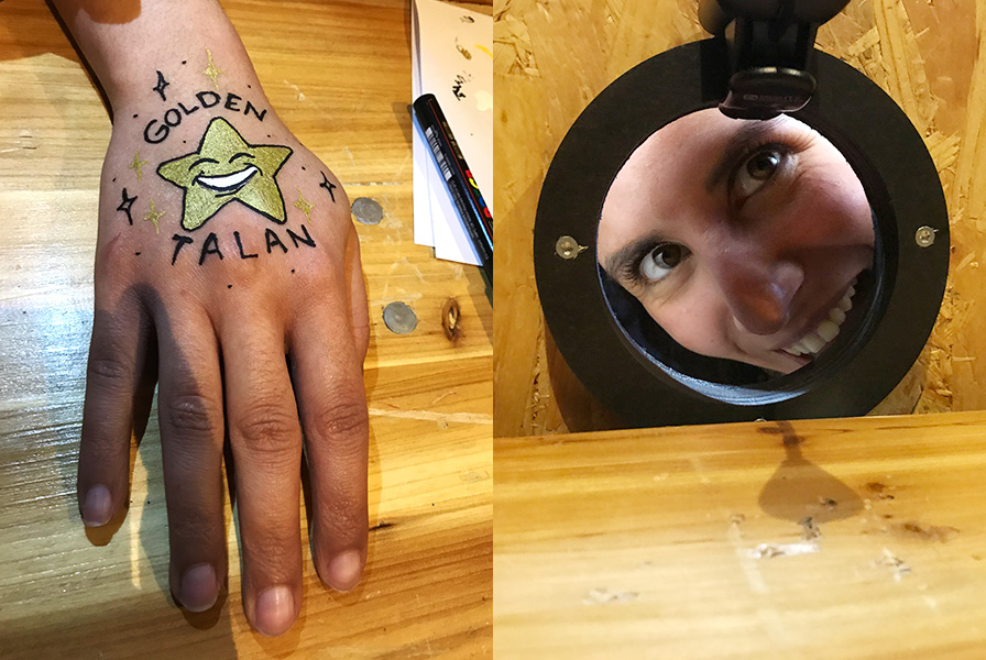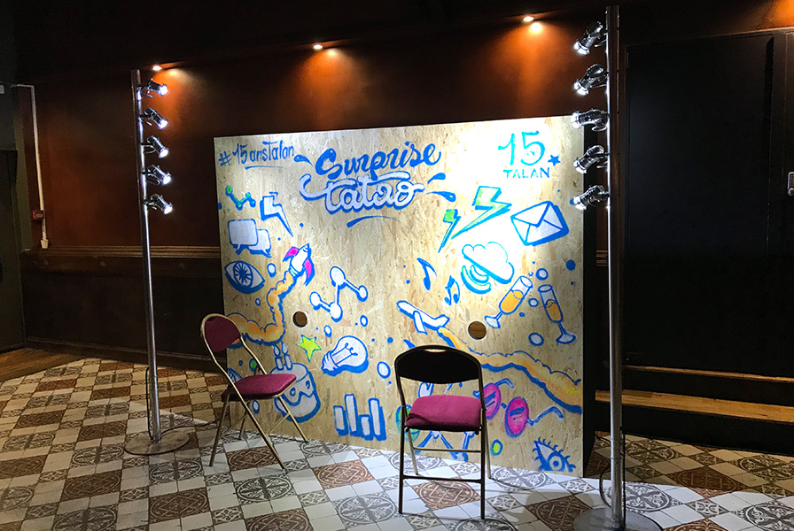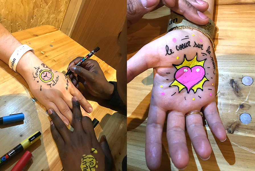 Among the most unexpected entertainment formats for Dubai and Abu Dhabi events, the Dubai surprise tattoo animation stands out for its spontaneity and its ability to spark genuine laughter. The concept is simple: a street-art-painted wooden façade with two openings, two chairs facing it, and two artists hidden behind the structure. Guests slip their hands through the openings without knowing what will happen next, and a few minutes later they discover a fully customized illustration—typographic, character-based or graphic—drawn directly on their skin. Nothing printed, nothing predictable, only pure live creativity shaped by Hakim Idriss (Aki Midris) and his team.