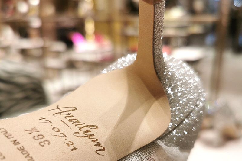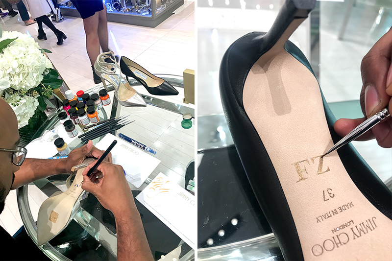 Comme pour nos activations à Dubaï, Paris ou Riyad, la personnalisation des escarpins s’effectuait au détail le plus discret et élégant : la semelle intérieure. Un emplacement qui respecte les codes du luxe, tout en offrant aux clientes la possibilité d’apposer leurs initiales sur une zone protégée, non exposée à l’usure. Ce format de monogramme sobre mais profondément personnel séduit particulièrement les marques de haute maroquinerie et de footwear premium.