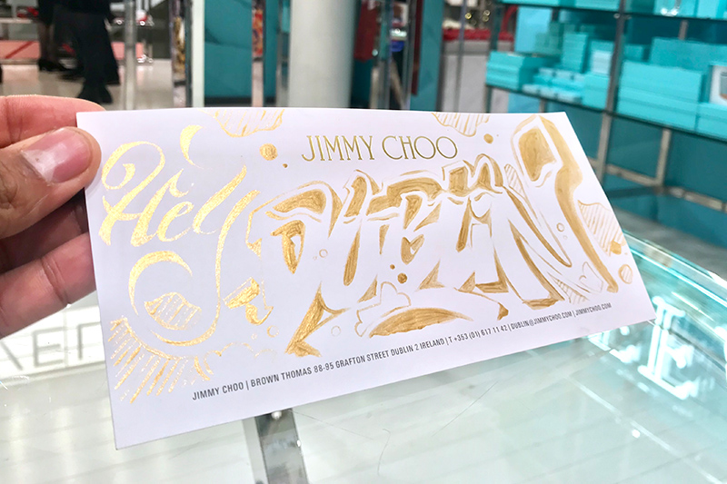 Après Paris et Londres, c’est à Dublin que Jimmy Choo a fait appel à nos services pour une animation de Dubai leather personalization adaptée au marché irlandais. Installé au sein du prestigieux grand magasin Brown Thomas, notre artiste spécialiste des monogrammes, Hakim Idriss, a proposé une session de personnalisation live sur chaussures et petite maroquinerie. Une opération élégante, raffinée et parfaitement intégrée à l’ADN de la marque.