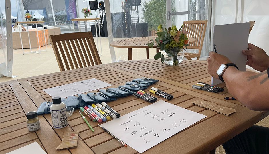 We designed a compact, elegant workstation that kept the flow effortless: sample sheets for lettering styles, curated markers and finishes, and a rapid hand-off so each attendee left with a unique, branded keepsake. The seaside setting brought a relaxed, premium energy that matched the event’s networking goals.