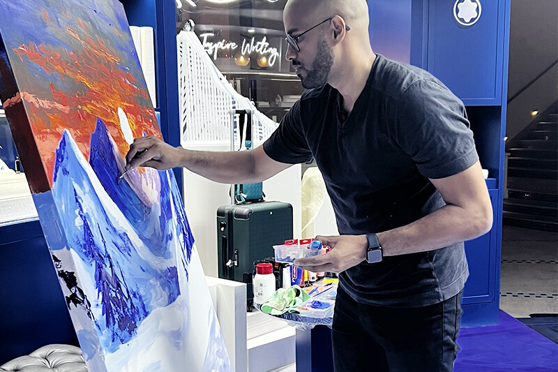 Trade shows in Dubai and Abu Dhabi are competitive environments where every brand competes for the same attention. Rows of booths, similar scenographies, and an audience that walks fast unless something truly stands out. During the Salon du Chocolat in Paris, we were invited to rethink what a live artistic activation could bring to a professional fair: movement, authenticity, creativity, and an immediate “pause moment” for visitors. Live painting became the anchor point of the stand—an evolving performance that naturally generated flow, photos, and conversations, exactly what many brands in Dubai World Trade Centre or ADNEC seek when planning their event strategy.