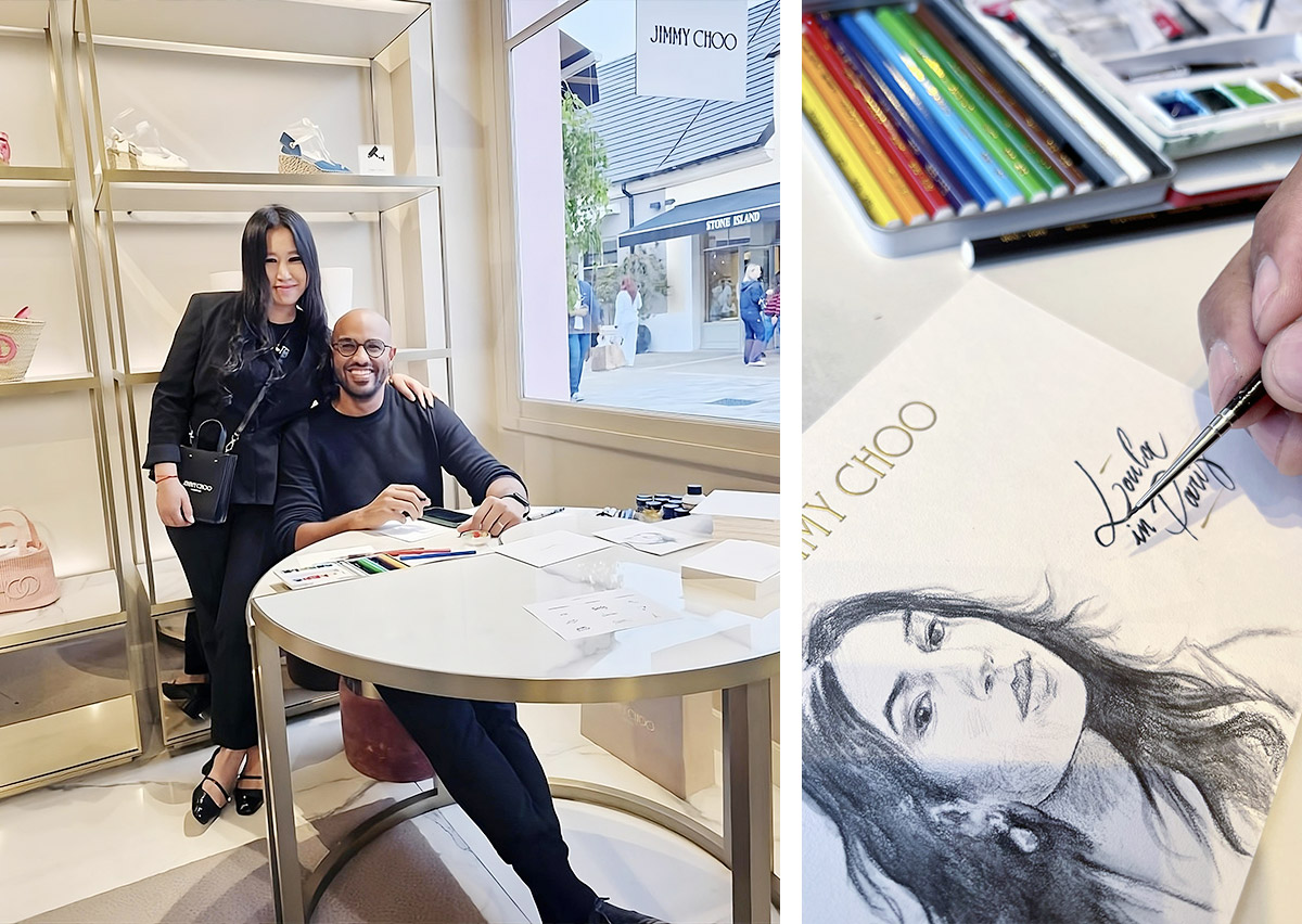 In the world of luxury retail, personalization has become one of the most powerful tools for creating memorable customer experiences. Graffeur Paris Dubai partnered once again with Jimmy Choo to bring a refined and intimate artistic activation directly into the heart of the boutique: live portrait sketching sessions for clients. This exclusive experience invited customers to sit with a professional artist, who captured their essence in elegant, hand-drawn portraits — an interaction that turned each visit into an unforgettable artistic encounter.