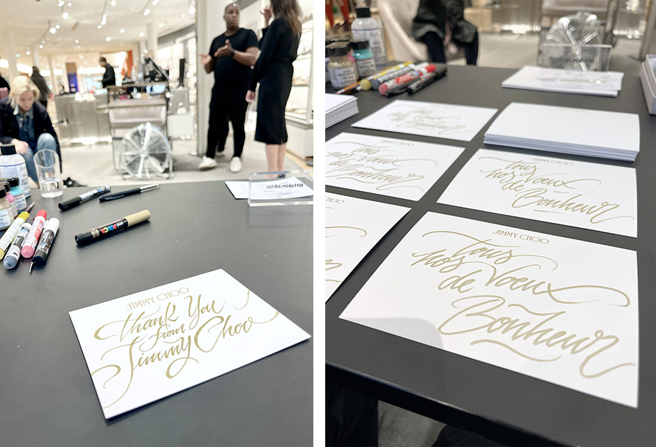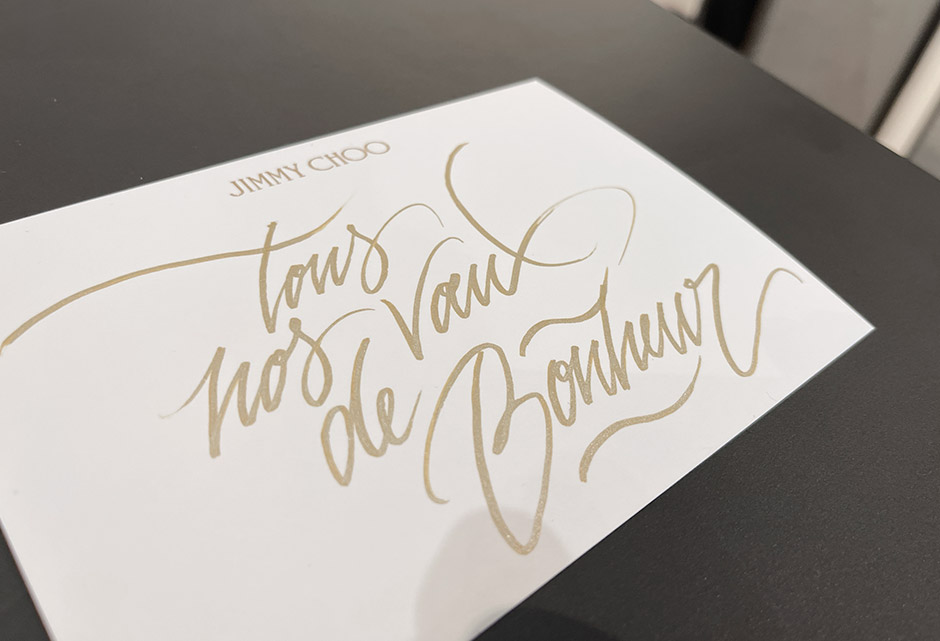 Calligraphy on paper at Jimmy Choo