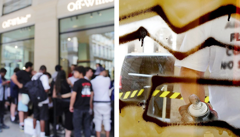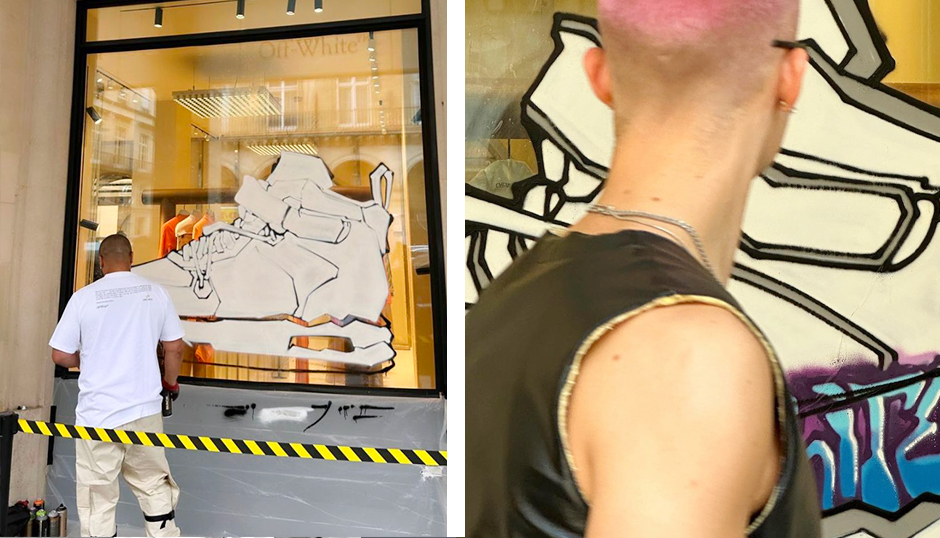 For the launch of the “Exclusive Access” sneaker collection, the Off-White flagship in Paris became the stage for a live art performance. The challenge: to reinterpret the new design through graffiti, painted directly onto the store’s iconic façade. The result was a powerful visual statement — a fusion of motion, innovation, and raw energy that captivated onlookers, collectors, and fashion media alike.