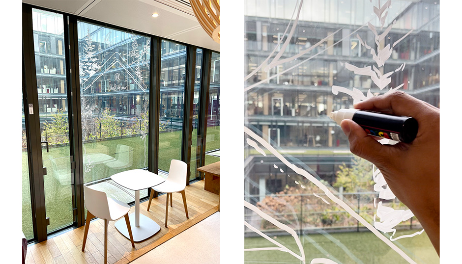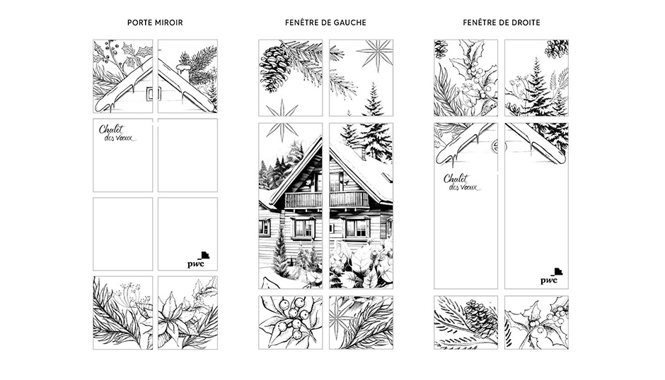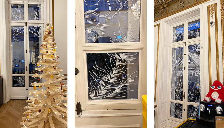 Inspired by the success of our seasonal installations for international clients such as PwC in Paris, the project focused on using glass façades as storytelling canvases. Each window became a stage for winter scenes — snow-covered fir trees, frosty patterns, and delicate hand-painted motifs — infusing everyday workspaces with a sense of wonder. The idea was simple: turn corporate or retail environments into living showcases that connect people to the festive mood, wherever they are in the world.