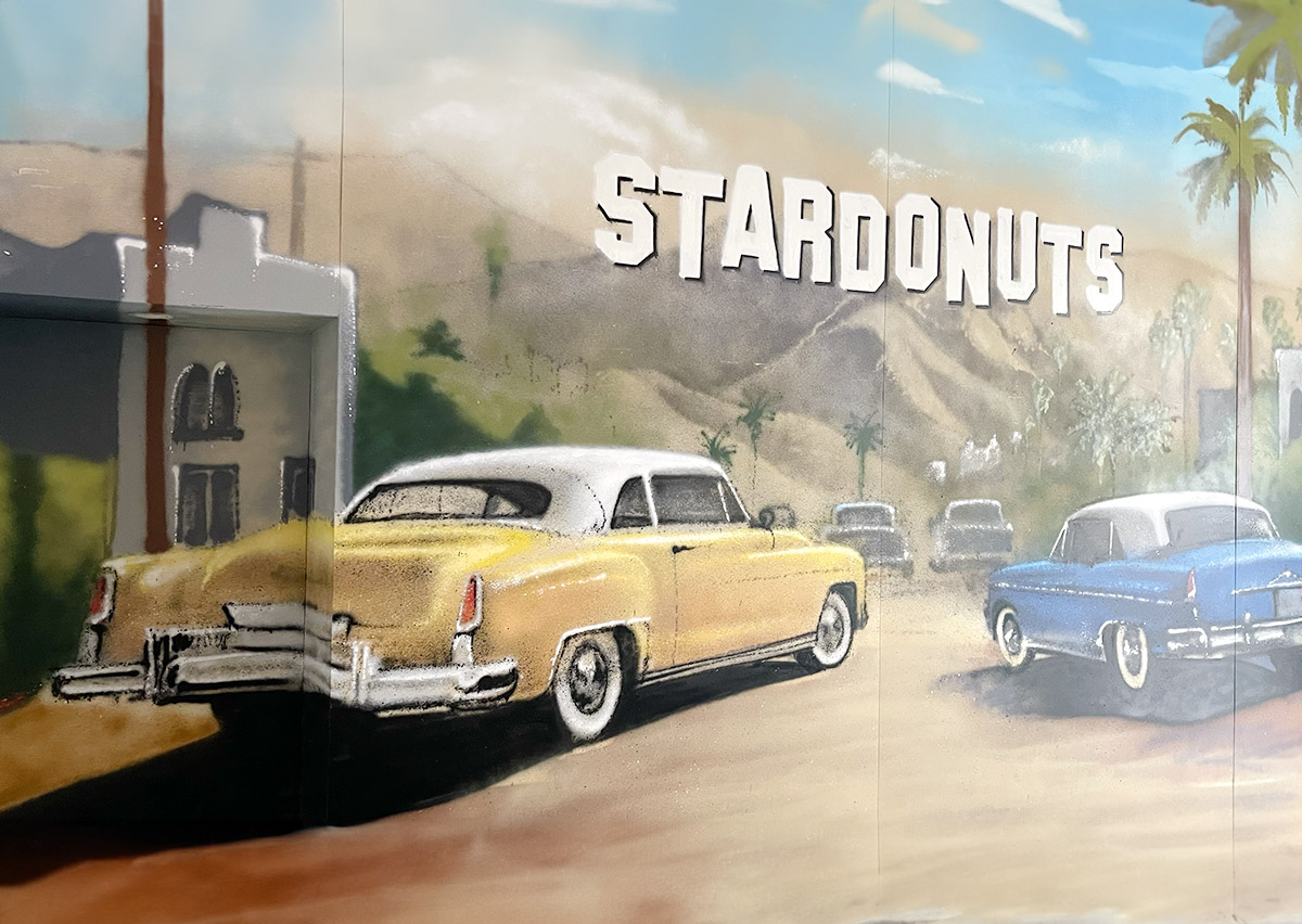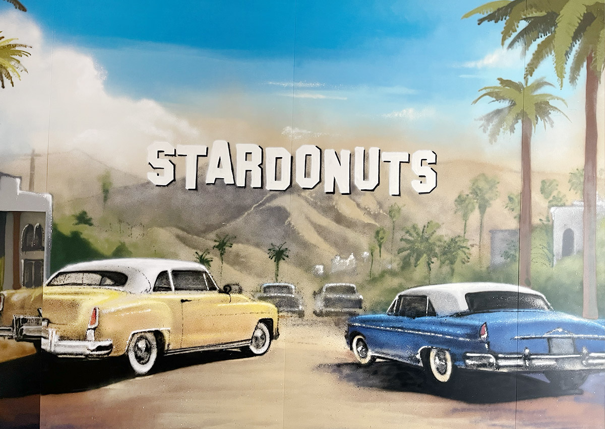 In a market as competitive as Dubai’s F&B sector, aesthetic appeal drives foot traffic. Artistic walls help businesses stand out in neighborhoods filled with premium eateries and coffee spots. Our mural for Star Donuts illustrates how artistic branding can elevate a simple dessert shop into a lifestyle destination. The playful color palette and bold typography reflect the joyful, indulgent spirit of the brand — a concept that resonates strongly with the vibrant atmosphere of Dubai’s café scene.