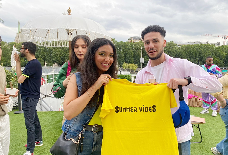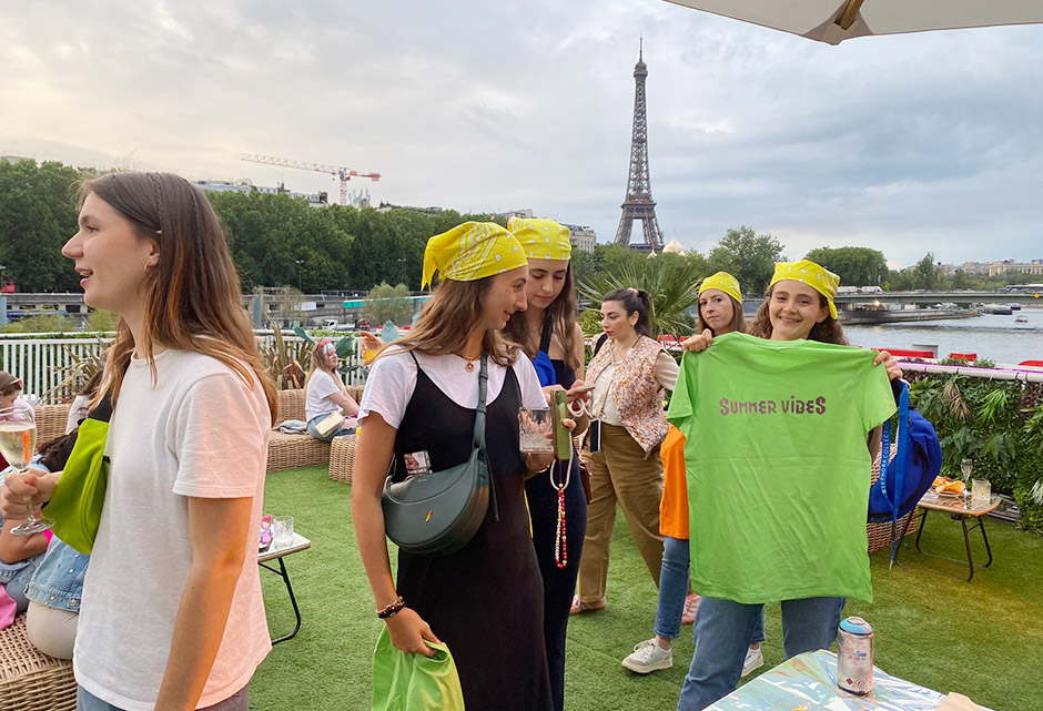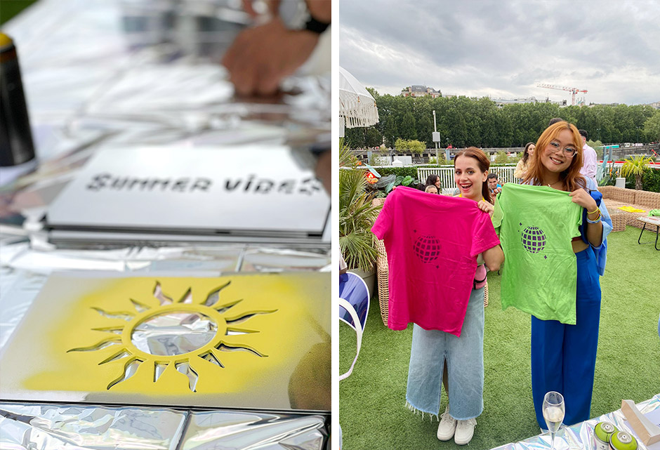 At the crossroads of fashion, color, and creativity, Sephora stands as one of the most dynamic lifestyle brands in Dubai’s beauty scene. For its Summer Party, the brand created a vibrant, 90s-inspired atmosphere — a celebration of energy and nostalgia where everything, from the décor to the guests’ outfits, reflected the same bold, playful spirit. Our team was invited to bring an artistic personalization activation to life: a live T-shirt customization station led by three artists throughout the evening.