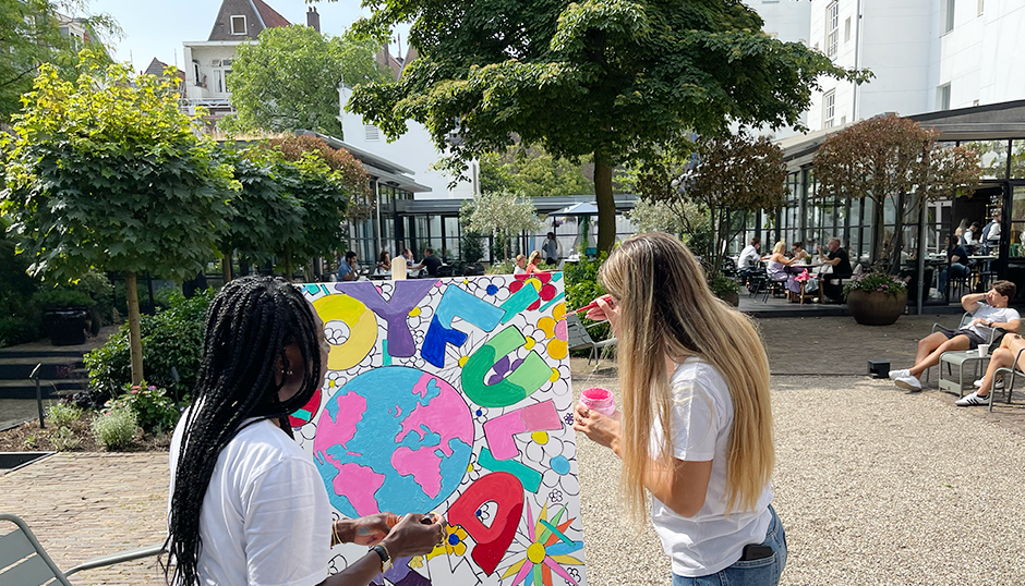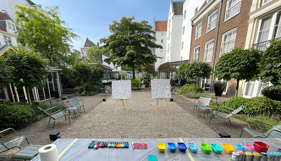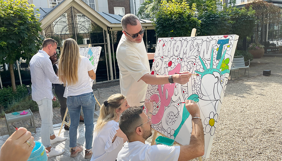 In the intimate garden of the Pulitzer Hotel in Amsterdam, Tiffany & Co. invited its teams to take part in a creative team-building experience designed by Hakim Idriss Studio. Beneath the summer light, participants gathered around blank canvases to paint, express, and reconnect through a vibrant live painting session — far removed from the codes of the corporate world, yet deeply connected to the brand’s spirit of harmony and excellence.