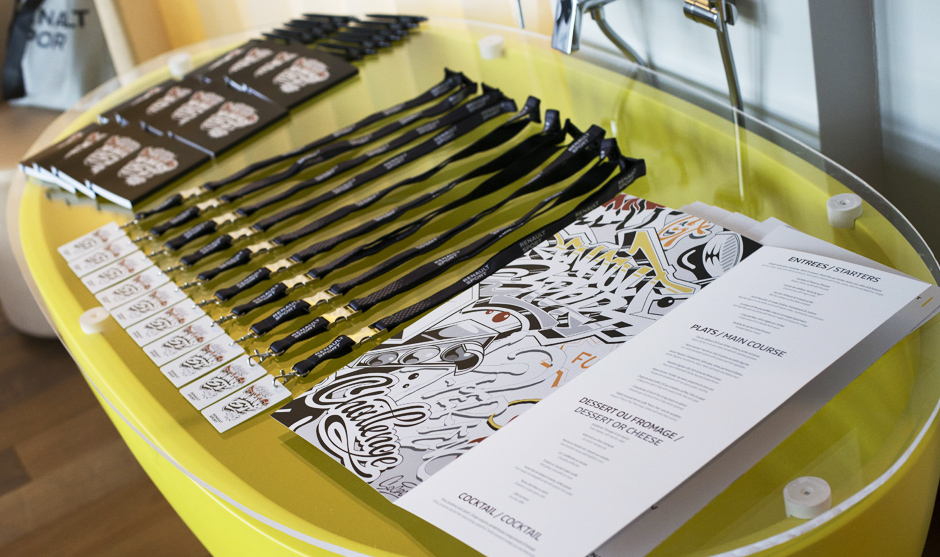 Beyond the giant mural created at “Les Chaudronneries” in Montreuil, a complete set of branded materials was produced: USB keys, notebooks, signage elements, staff jackets and printed assets, all designed using the same urban creative direction. This coherence across multiple formats mirrors the holistic branding approach often expected by UAE partners, similar to how our artwork is adapted during luxury retail activations such as Dior eyewear personalization or during lifestyle-oriented events like the Paul Marius vegan-leather personalization event.