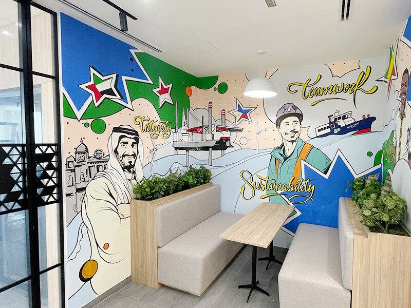 Office decoration, graffiti, street art, Dubai, art, interior design, open Space