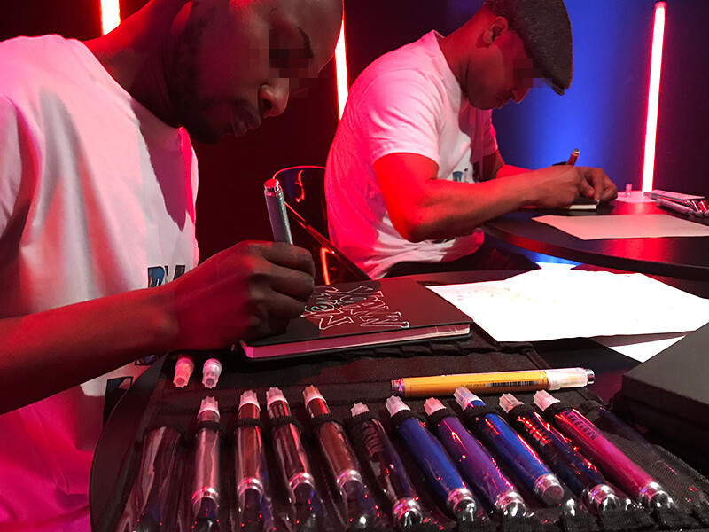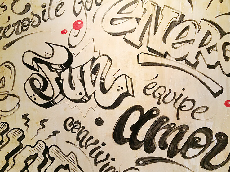 I am specialized in Graffiti and Street Art on BtoB projects : interior designs for restaurants and live artistic performances during events and shows.